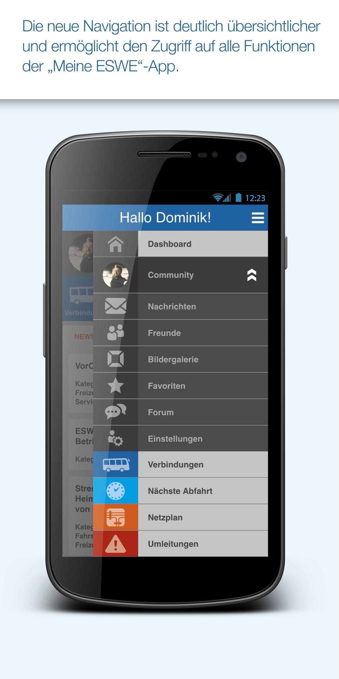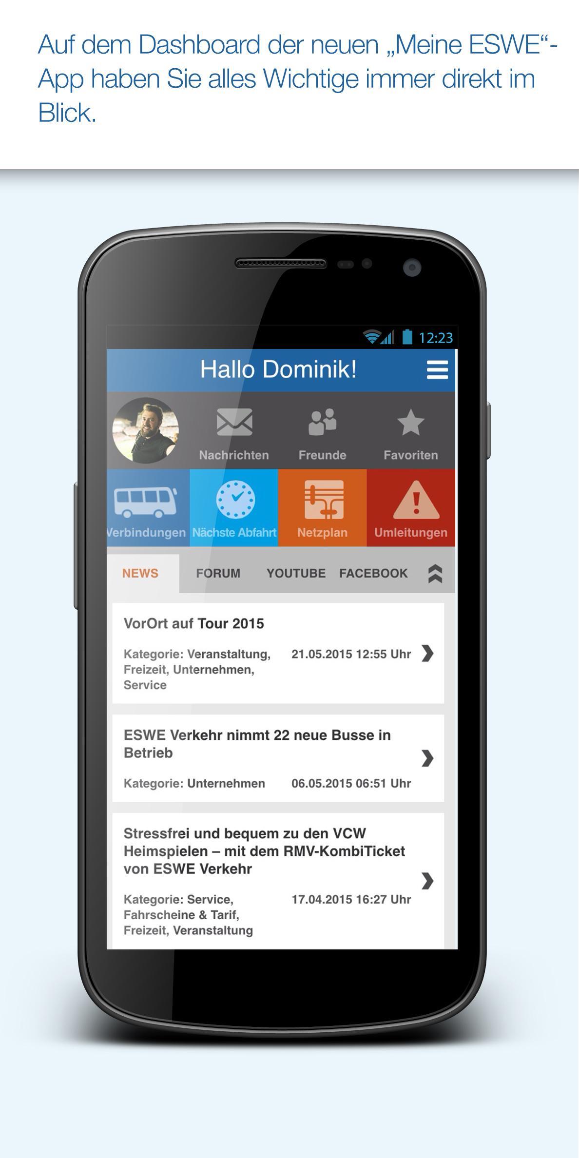 移动应用程序“ Meine ESWE ”配备了各种功能: